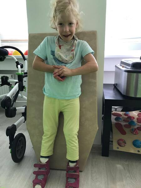 Avšak Adeli krásne reaguje na všetky terapie, ktoré absolvujeme. V roku 2017 sa nám podarilo zoperovať rázštep mäkkého podnebia čo mala v pusinke. Následne sme intenzívne začali navštevovať klinickú logopedičku a spoločnými silami sa nám podarilo Adelku naučiť papať normálnu stravu. Adelka konečne sama požuje, čomu sa veľmi teším. Začalo jej ešte viac chutiť papať, lebo keď si môže sama na tajnáka niečo dzobnúť, je to pre ňu neskutočný zážitok, že niečo zvládne sama a bez pomoci. Taktiež sa nám zlepšilo pitie, pekne sama sa vie napiť cez slamku. Cez leto sa nám vďaka OZ pre Hody a Hody Týmu a ich finančnému daru podarilo absolvovať delfinoterapiu v Tureckej Antalyi. Bol to úžasný zážitok nie len pre Adelku, ale aj pre nás. Po vrátení z Turecka, sa začala Adelka snažiť komunikovať. Predtým slovká ÁNO a NIE používala cca raz za mesiac. Po absolvovaní terapie je to denne, avšak stále to neni na aktívnej úrovni. Zlepšila sa v chodení na nočník. Aj keď je stále plne plienkovaná, tak aspoň ráno a večer urobí svoje potreby do nočníčka ako jej veľký kamoši. Adelka je na terapiách sústredenejšia a práca s ňou je lepšia, čo mi hlásia aj samé terapeutky. A hlavne sa jej podarilo konečne prvý krát vysloviť meno svojho bráška. Síce to odvtedy nezopakovala, ale už vieme že to technicky vie vysloviť, že to v nej niekde je a treba to len prebudiť, aby začala slová ktoré pozná aj využívať. Som rada, že sme mohli absolvovať túto úžasnú a drahú terapiu a veľké ĎAKUJEM patrí spomínaným občianskym združeniam, že nám to umožnili. Aj naďalej s Adelkou pravidelne cvičíme 3x do týždňa, 1x do týždňa navštevujeme kraniosakrálnu terapiu, čo pôsobí na jej emočnú stránku, 1x za dva týždne navštevujeme špeciálnu pedagogiku- tú ako jedinú nám prepláca poisťovňa, 2x do týždňa spomínanú logopédiu a po plávaní s delfínmi sa Adelka zaľúbila do plávania, takže navštevujeme 1x do týždňa kurzy plávania. Pravidelným cvičením sa Adelka zlepšuje v motorike, pekne chodí aj na dlhšie vzdialenosti, učí sa zdolávať menšie prekážky, ale stále nás čaká ešte veľa práce, cvičení a terapii. Úžasné pokroky zaznamenávame aj na plávaní. Naučila sa potápať. Plávanie jej rozšírilo obzory a stalo sa jej veľkým koníčkom. Zatiaľ sa naučila potápať a kopkať nôžkami a veľmi by sme chceli, aby sa naučila pohybovať a plávať vo vode s pomôckami. Hyperkinézy končatín (samovoľné pohyby nôh a rúk) nás v cielenom pohybe veľmi obmedzujú, ale verím že vo vodičke sa nám podarí končatiny dostatočne uvoľniť a rozhýbať. Všetky tieto terapie sú náročné nie len na čas a energiu, ale aj finančne. VĎAKA Vám všetkým našim prispievateľom 2%, môžeme s Adelkou absolvovať tieto terapie a pomôcť jej k ďaľším osobným víťaztvám. Bez Vás by sme to nezvládli. Ďakujeme.